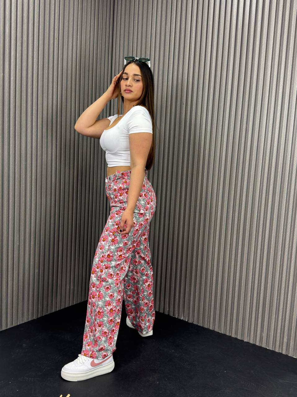Silueta clásica con estampado floral.